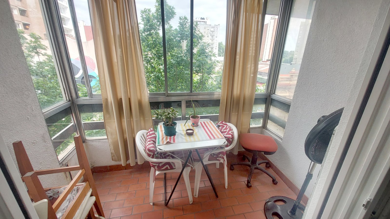 Superficie total de 46,54 m² (43,06 m² cubiertos, Balcón 1,63 m2, tender 1,85 m²). Orientación oeste. Edificio de 1981, sólido y bien conservado. Ambientes: 3. Baños: 1. Todos los servicios.